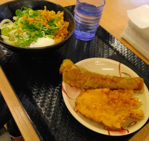 温玉ぶっかけ 560円(中) + ちくわ揚げ 130円 + 鶏天 150円