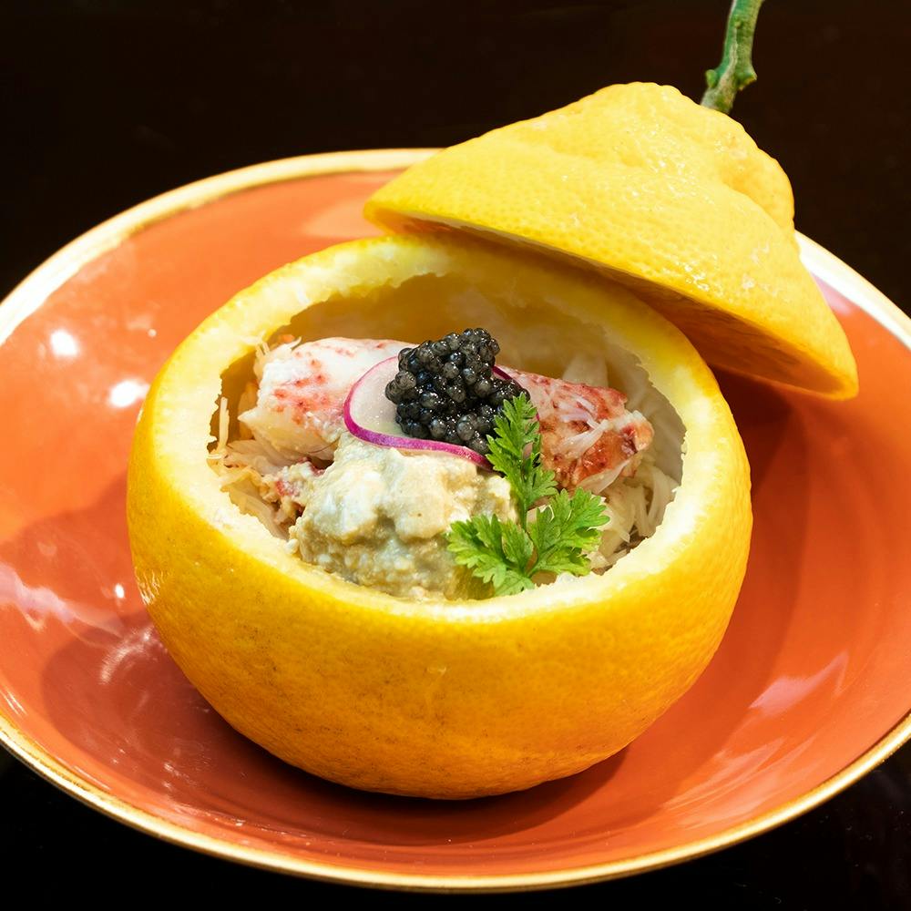 料理長厳選の食材から作る美しい料理と本格江戸前鮨を併せたコースをぜひお楽しみください。食材は、四季折々の恵みを携えた旬のお野菜や魚介を中心に厳選