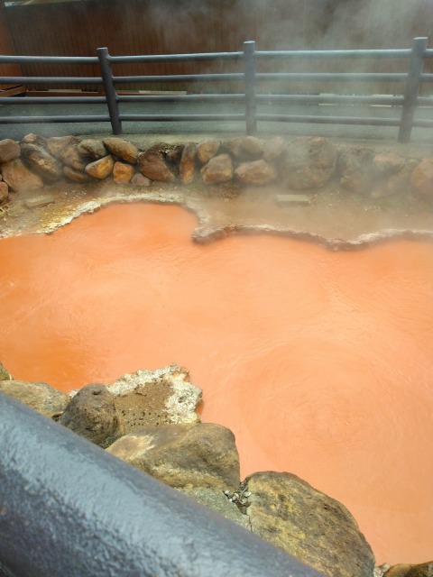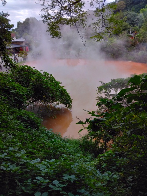 赤い熱泥が堆積していることにより真っ赤な色となっている。