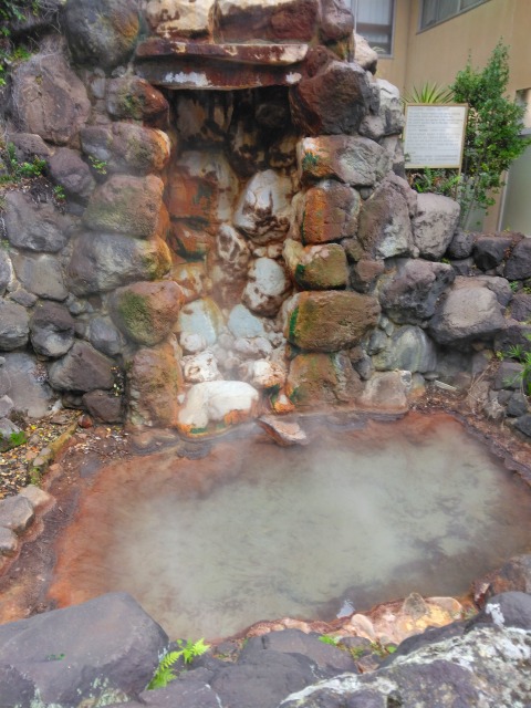 灰色の泥系の水質が特徴。温泉施設が併設されている。