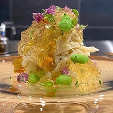 熊本・田崎市場から毎朝仕入れる旬の食材を、 その日限りの献立に仕立てる、完全予約制のカウンター日本料理店。 お品書きはあえてご用意せず、素材と対話するように組み立てるコース